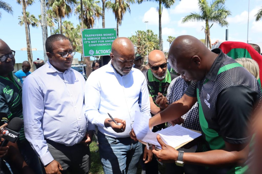 Today, ActionSA along with members of the community and that of the EThekwini Ratepayers Protest Movement – who heeded our call to join our protest – successfully demonstrated and handed over a Memorandum of Demands to the Durban International Convention Centre (ICC) Board Chairperson, Mr Glen Mashinini, calling for transparency in the matter where the ICC and the eThekwini Municipality signed a Memorandum of Understanding (MoU) to fully fund the ANC Women’s League Conference, by coughing up R5 089 781,90 from tax payer money, which was latter invoiced to the Municipality at a total of R4 794 824,21.