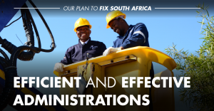We need committed, ethical and professional public servants to succeed with our vision of fixing South Africa. We will declare corruption as Public Enemy Number 1, prosecute the corrupt, prevent further corruption through improved controls and oversight, and encourage and protect whistle-blowers.