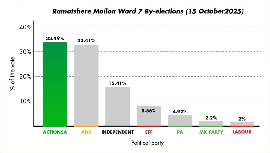 ActionSA will now serve the residents in Ward 7 Ramotshere Moiloa with the same standards set by the likes of Moya, Mashaba and Trollip, as the story of ActionSA’s governance appeal spreads further throughout the country.