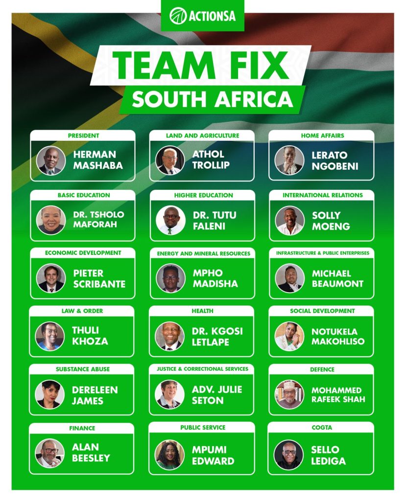 These 18 candidates form part of what we call our “Team Fix South Africa” which is intended to show South Africans the calibre of leadership we will have when we take government.